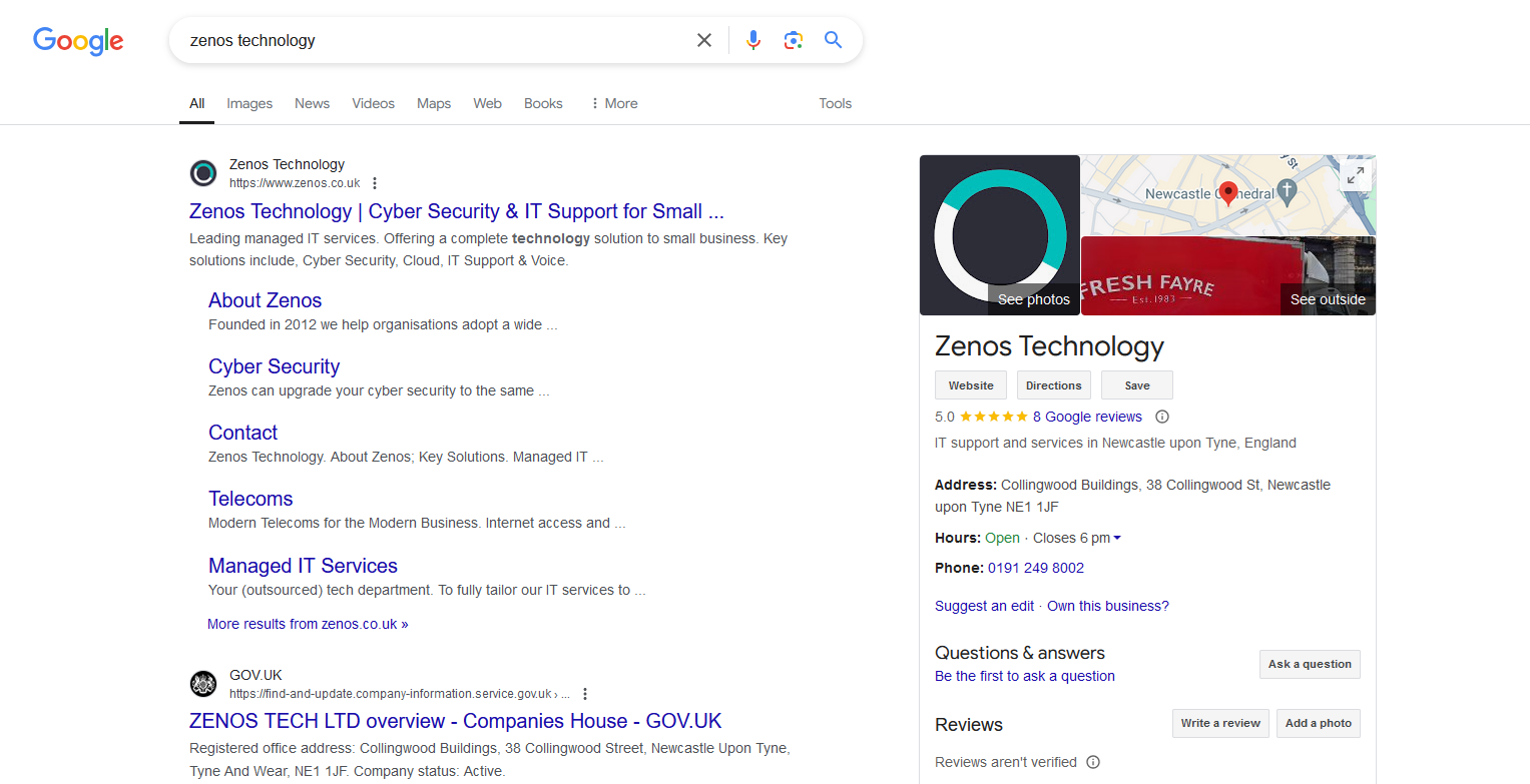 Since 2017, our business has traded as Zenos Technology. In that time, we have worked extremely hard on our brand identity and marketing, making sure that “Zenos Technology” defines our business outside of the various “Zenos” business names on the Internet. We've also been very careful to not put ourselves in a conflicting situation by distinguishing ourselves using the "Zenos Technology" name.